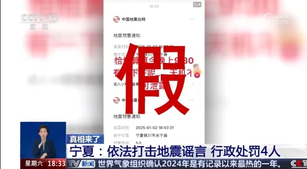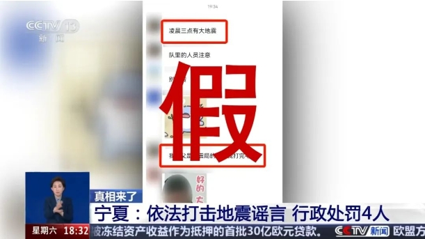 中央電視臺(tái)新聞?lì)l道《共同關(guān)注》欄目以《真相來了:這些都是謠言》為題,報(bào)道了寧夏銀川市公安機(jī)關(guān)打擊處理的4起典型網(wǎng)絡(luò)涉震謠言案件。截至1月11日,監(jiān)測(cè)發(fā)現(xiàn)各類謠言及不實(shí)信息87條,依法嚴(yán)厲快查快處網(wǎng)上涉震造謠傳謠活動(dòng),依法給予教育批評(píng)53人,治安拘留4人。