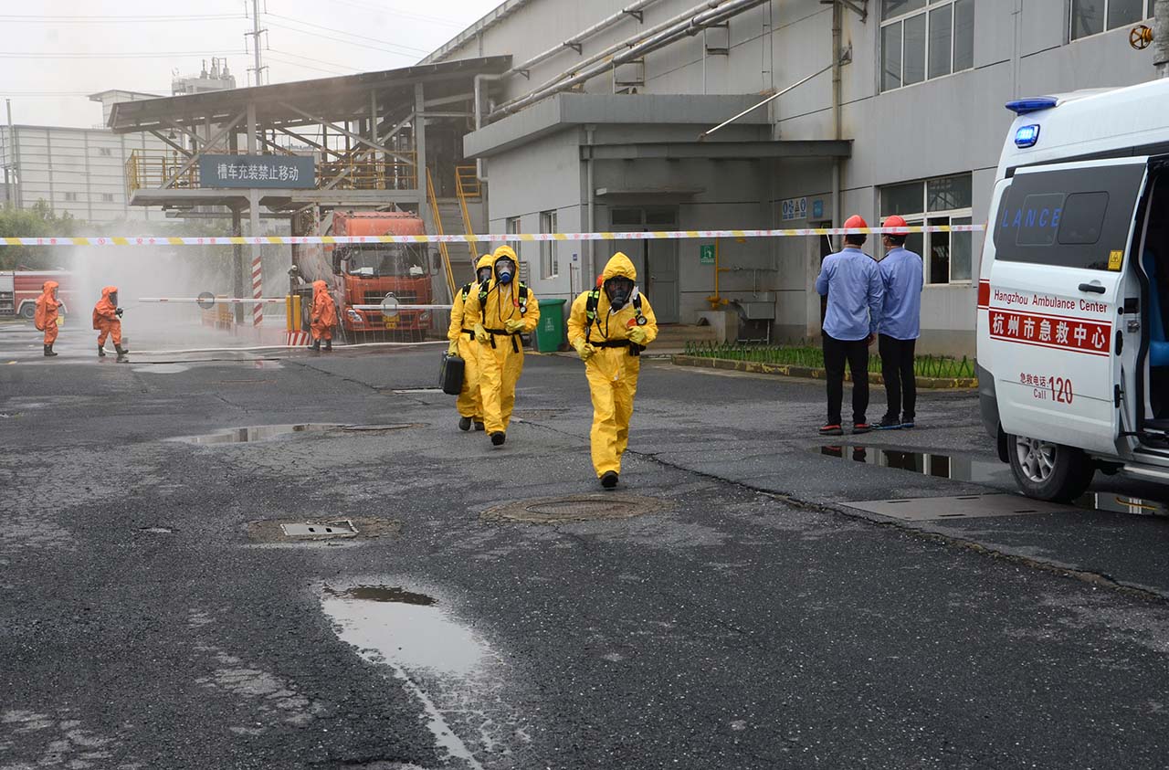 6月4日上午,杭州市舉行2021年全市大面積停電事件應急聯合演練,集團公司作為作為僅有的兩處向總指揮部進行實況直播的現場處置點之一,參加了化工企業(yè)應急處置環(huán)節(jié)的演練。本次聯合演練由市發(fā)改委、市應急管理局聯合主辦,國網杭州供電公司承辦,市政府戴建平常務副市長參加聯合演練并擔任聯合演練總指揮,錢塘區(qū)應急管理局副局長孔鐵林擔任集團公司應急處置演練現場總指揮。