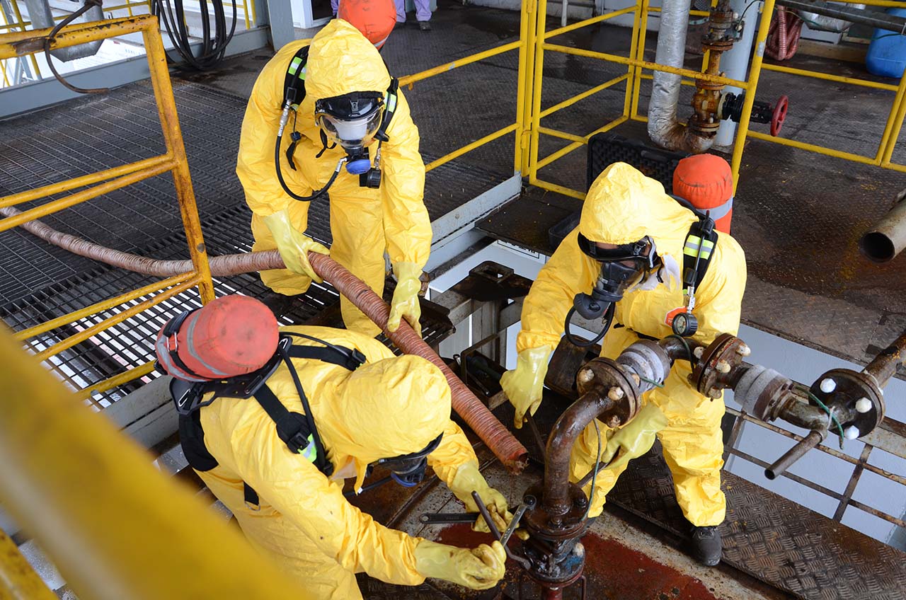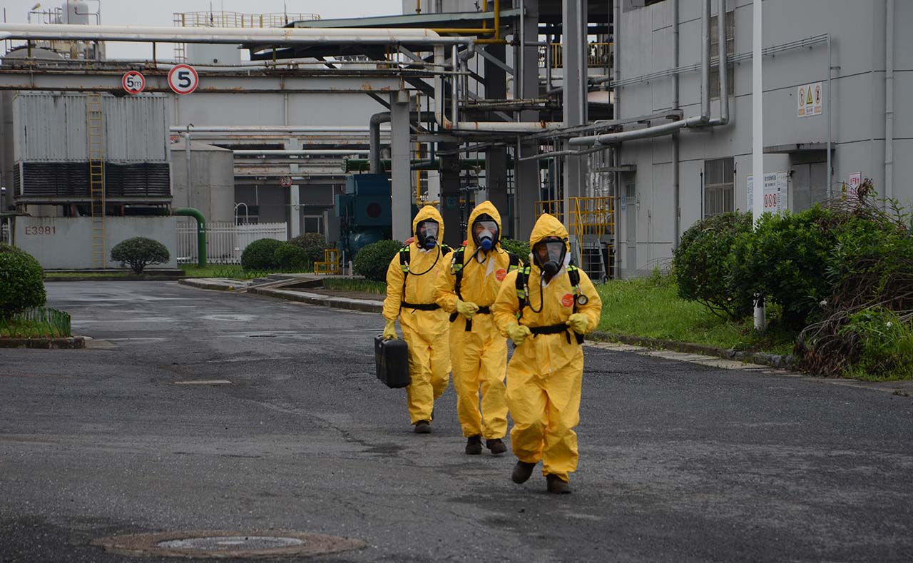 本次演練情景模擬杭州市區(qū)范圍內受臺風天氣影響,錢塘區(qū)電網設施受損,發(fā)生大面積停電,連鎖反應導致集團公司液氯槽車罐裝處發(fā)生液氯泄漏的險情。險情發(fā)生后,集團公司立即啟動《生產安全事故應急預案》,集團應急救援站迅速集結隊伍開展應急搶險工作。 錢塘區(qū)應急、消防、公安、供電、生態(tài)環(huán)境、衛(wèi)健等部門第一時間奔赴現場,協同集團公司成立現場搶險救援指揮部,開展應急處置和緊急支援。同時與市應急指揮部實時連線,及時匯報相關信息,協同處置。在各部門密切協作下,應急搶險工作有條不紊地展開。