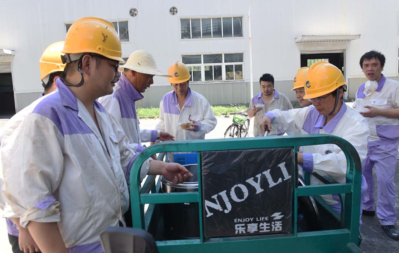 烈日炎炎,酷暑難擋,集團(tuán)公司廣大員工堅(jiān)守崗位,奮戰(zhàn)高溫。今天下午,總務(wù)部開始為高溫一線員工送上涼爽可口的消暑湯。和往年一樣,氣溫在35℃以上的日子,總務(wù)部將在每天下午把解暑湯送到生產(chǎn)現(xiàn)場,冰鎮(zhèn)綠豆、銀耳羹、蝦皮咸菜湯……品種每天有變化,讓員工在酷暑天感受到公司的關(guān)懷。保持旺盛干勁。